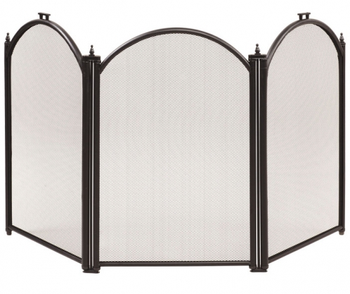 Трехстворчатый экран с рамой из стали станет надежной защитой от искр, которые могут вылетать из камина. А благодаря привлекательному внешнему виду экран станет не только функциональным, но и декоративным элементом.