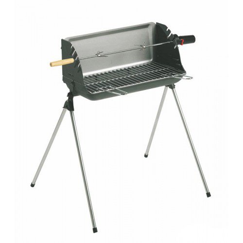 Контейнер очага чугунный, перенастраиваемый, простой и практичный гриль превращается в жаровню простым поворотом контейнера вниз, регулирование решетки по высоте, несколько положений для вертела, двигатель и вертел в комплекте поставки.