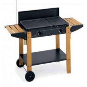 Практичное компактное барбекю, идеальное для сада и террасы. Основа из окрашенной стали с деревянными ножками и столешницей. В комплекте чугунные пластины с наружной поверхностью из шлифованного камня для пищи, которые можно использовать как обычные конфорки.