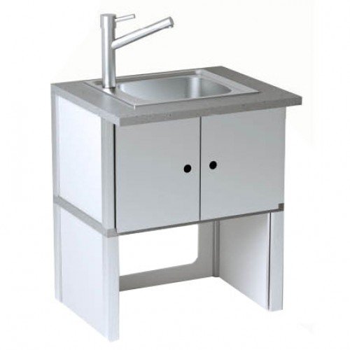 Модуль раковина с краном. Столешница со встроенной раковиной из нержавеющей стали и краном. С набором стальных дверец.