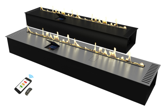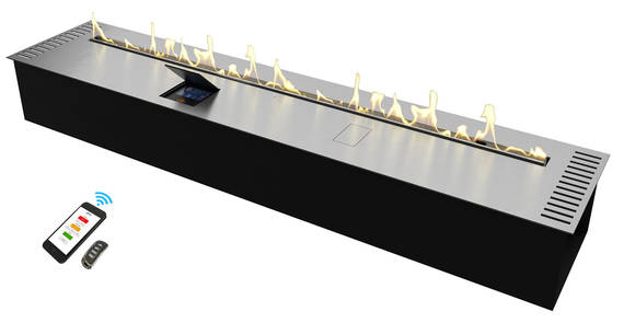 Автоматический биокамин Zefire Automatic 1400 является настоящим прорывом в современном производстве. Благодаря специальной технологии управлять прибором можно при помощи смартфона, планшета или другого гаджета. При этом такое устройство совершено безопасно в использовании, не выделяя запаха, гари и дыма. В случае возникновения любых аварийных ситуаций камин отключается автоматически. Что касается его охлаждения, то за это отвечают встроенные кулеры. Линия огня: 1200 мм.