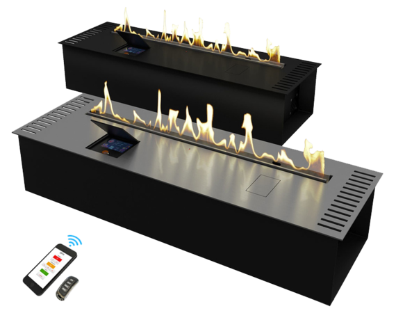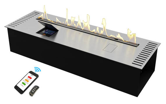 Автоматический биокамин Zefire Automatic 900 является настоящим прорывом в современном производстве. Благодаря специальной технологии управлять прибором можно при помощи смартфона, планшета или другого гаджета. При этом такое устройство совершено безопасно в использовании, не выделяя запаха, гари и дыма. В случае возникновения любых аварийных ситуаций камин отключается автоматически. Что касается его охлаждения, то за это отвечают встроенные кулеры. Линия огня: 700 мм.