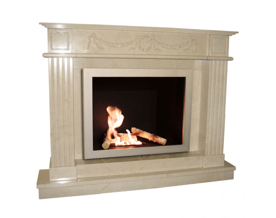 В работе используется камень Крема Нова. Это классический биокамин - подойдет для любого интерьера.