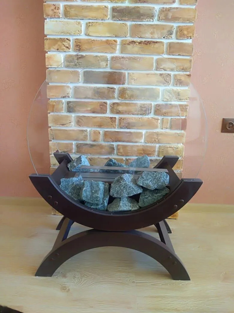 - Наполнитель: камни уральского гранита, предварительно термически нагретые в прокалочной печи, чтобы предотвратить их разрушение при нагреве камина.