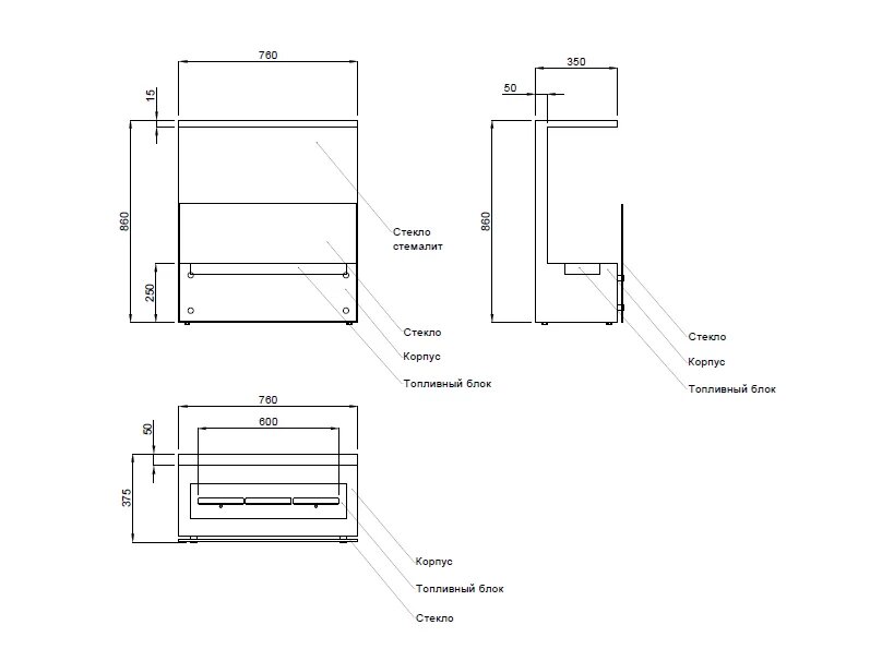 • Пожаробезопасен: используется биотопливо на основе этилового спирта, который сгорает полностью.