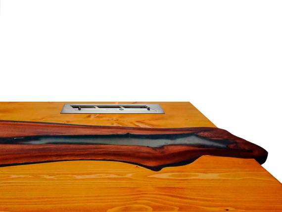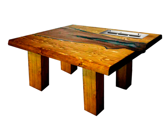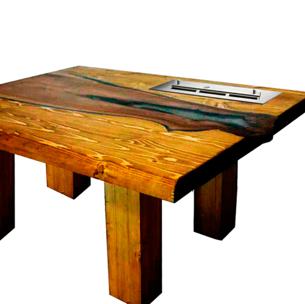Горящий биокамин также оставляет максимальный простор для новых идей. На противоположной стороне стола хватит места для легкого ужина, корзины для рукоделия или любимых книг. Творческие личности могут изменить дизайн по вкусу: заказать уникальный вариант из слэбов карагача, вишни или дуба. В палитре масел легко подобрать цвета для самых оригинальных и стильных решений.