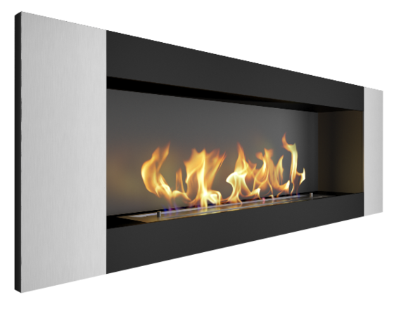 Материалы, применяемые при изготовлении очага и топки для камина - шлифованная нержавеющая сталь (вертикальные полоски) и черная порошковая краска (Германия), устойчивая к высоким температурам. Их комбинация в отделке очага рождает лаконичный стильный дизайн, главным мотивом которого становятся вертикальные линии. При линии огня длиной 600 мм за счет большого объема топливного бака биокамин рассчитан на 5-6 часов непрерывной работы. Управление пламенем осуществляется в ручном режиме с помощью мобильной задвижки и специальной кочерги.