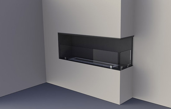 BKBF-A встраиваемый угловой двусторонний (правосторонний и левосторонний) камин для установки внутри помещения и снаружи.