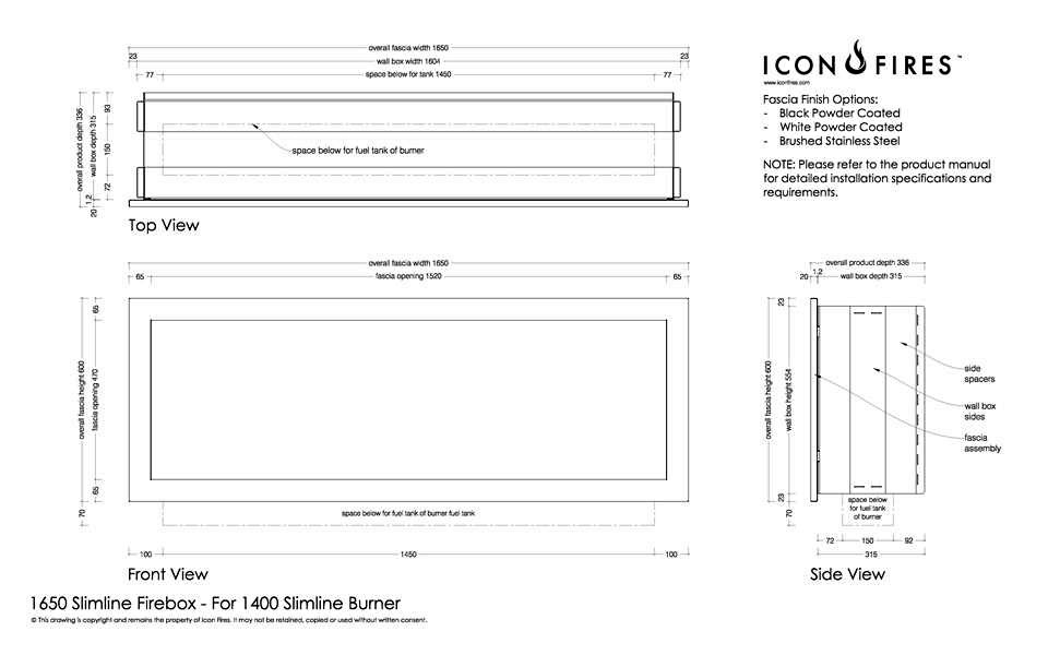 Встраиваемый биокамин ICON FIRES Slimline Firebox 1650FB
