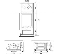 - При необходимости фасад очага закрывается съемным жаропрочным стеклом.