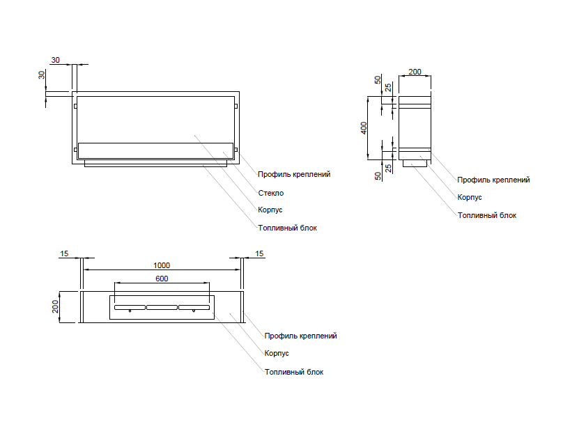 - Размеры топливного блока ШхГхВ, (мм) 660х46х150