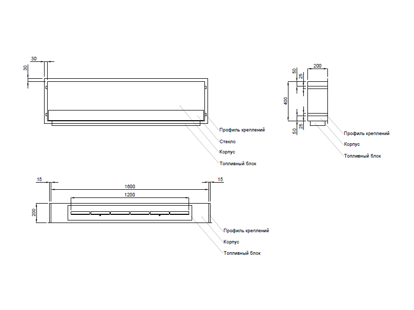 - Размеры топливного блока ШхГхВ, (мм) 1260х46х150