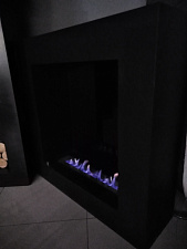 Корпус камина выполнен из стали окрашенной в чёрный цвет. Для обеспечения ровного горения и безопасной эксплуатации с двух сторон от горелки установлены термостойкие стёкла.