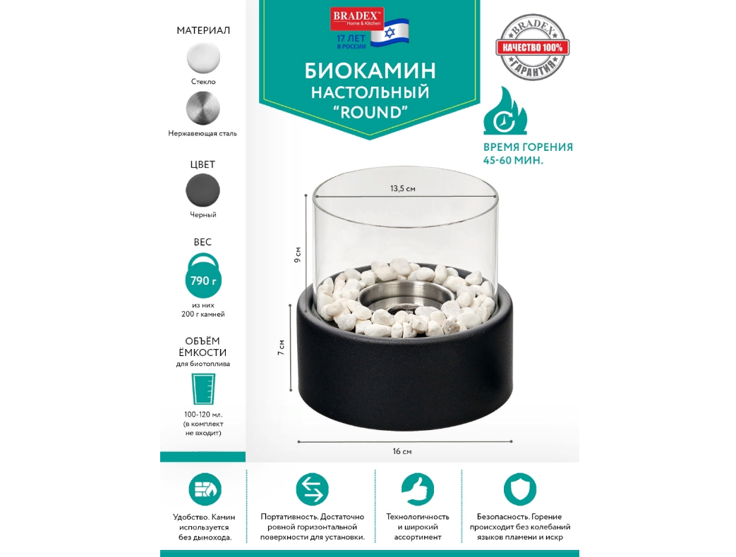 Стоит ли покупать биокамин Настольный мини биокамин Bradex Round