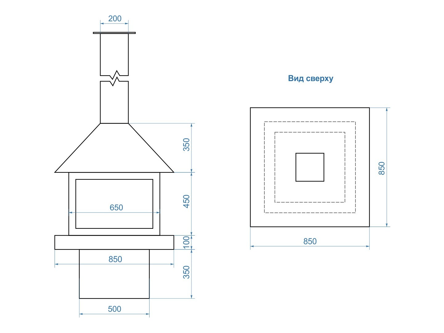 - Габаритные размеры ШxГxВ, (мм): 850х850x2500