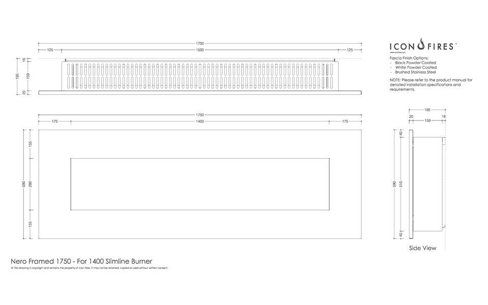 Настенный биокамин Nero 1750B с декоративной рамкой чёрного цвета комплектуется горелкой ICON FIRES Slimline 1400mm.