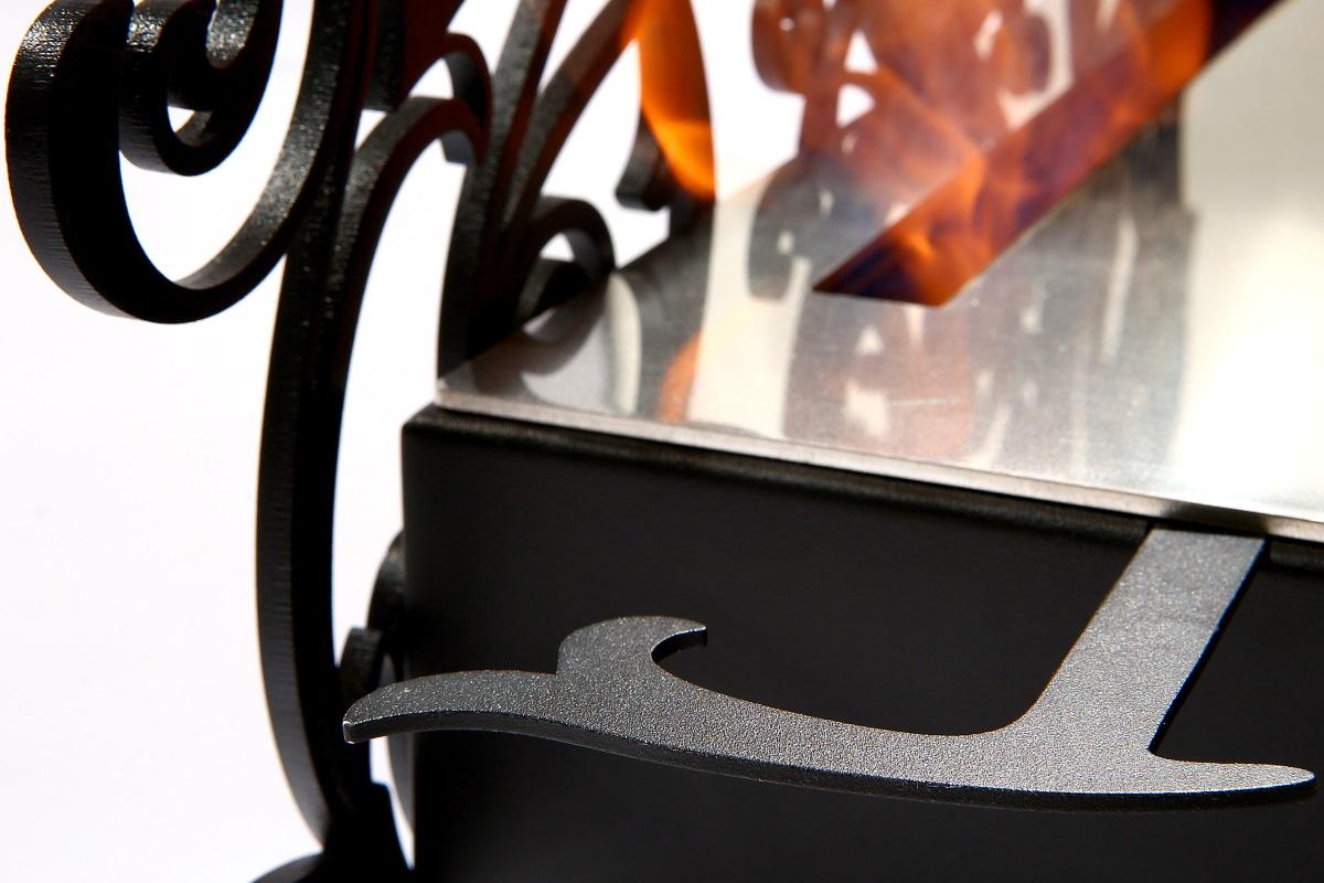 - уникальный запатентованный механизм плавной регулировки пламени TM Silver Smith, с оригинальной фигурной задвижкой располагается в боковой части биокамина, не мешает восприятию живого огня и при этом просто удобен;