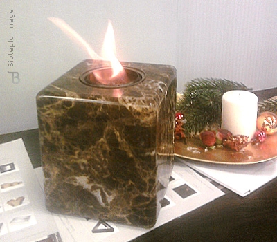 Эта модель биосвечи изготавливается из натурального мрамора желаемых сортов. Размер биосвечи может быть любым: в качестве базового представлен размер 150мм х 150мм х 150мм.