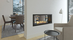 Торцевые биокамины имеют 2-3 обзорные стороны. Благодаря этому огонь видно с нескольких точек, что делает оборудование идеальным для людных мест. В квартиру или дом очаг приносит уют, атмосферу спокойствия и безопасности.