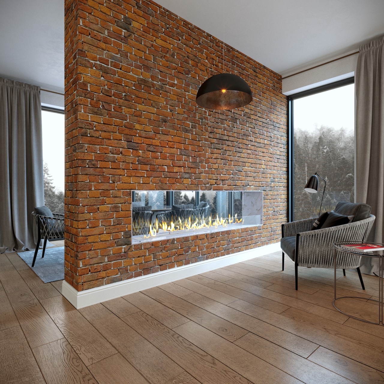 - Тип камина: Сквозной