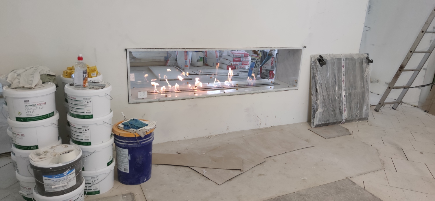 Биокамин Firezo Finestra Mramori имеет длину 2000 мм, но может быть изготовлен на заказ по вашим индивидуальным размерам. Линия огня имеет прямоугольную форму. Сварная конструкция очага гарантирует монолитность биокамина и исключает любые возможные проблемы, которые могут возникнуть в результате деформации резьбовых соединений под воздействием тепла после длительного использования.