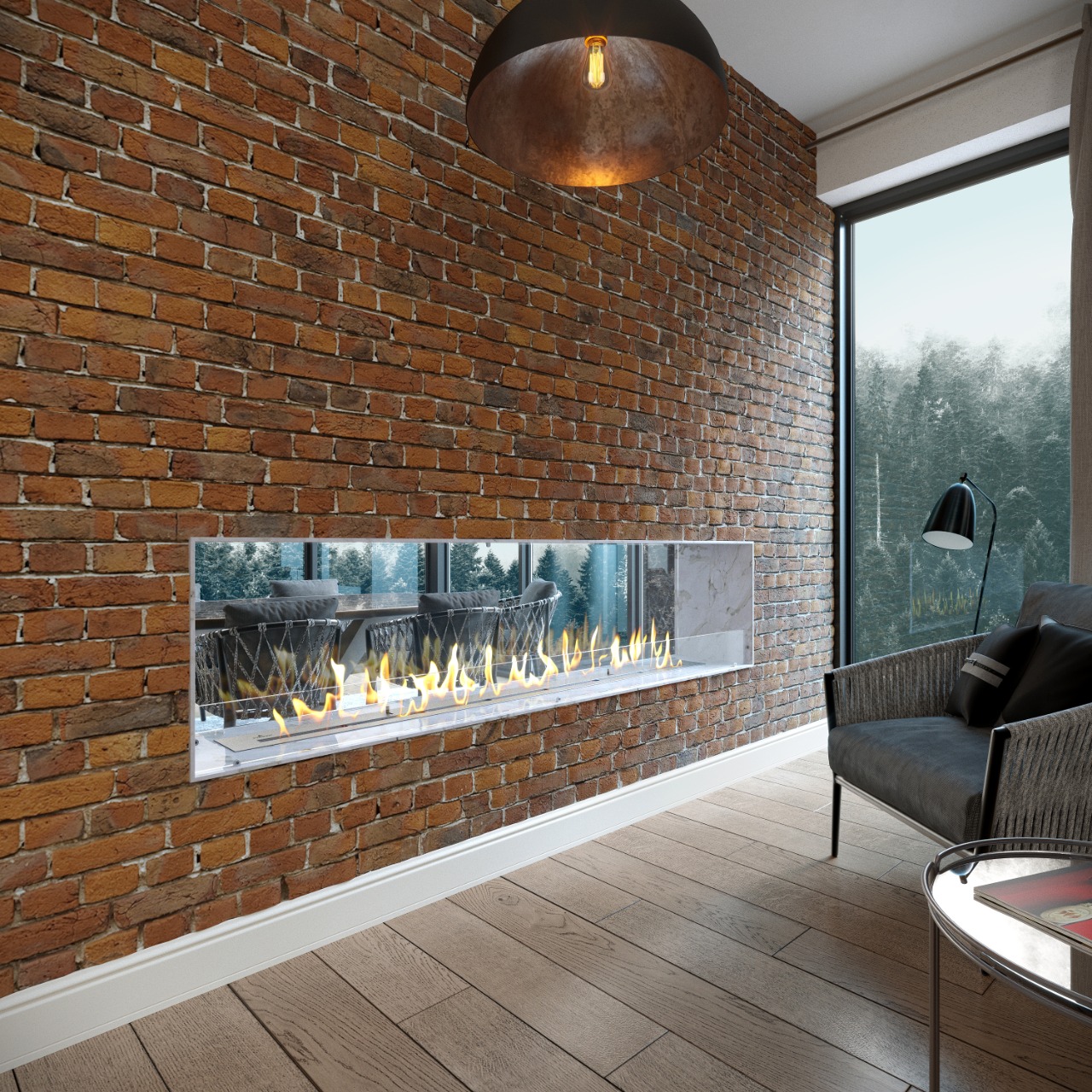 - Тип биокамина: Встраиваемый сквозной