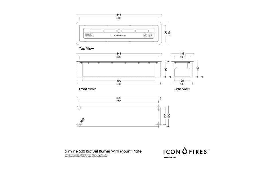 Встраиваемый Топливный блок для биокамина ICON FIRES Slimline 500mm ICON FIRES представляет Вам новую серию линейных встраиваемых горелок для биокаминов – Slimline. Горелки серии Slimline позволят осуществить любые дизайнерские решения и создать уникальный камин по Вашему собственному проекту. Топливные блоки производятся из 4-х и 6-ти миллиметровой брашированной нержавеющей стали марки AISI 304, что обеспечивает длительную и надёжную эксплуатацию в течение многих лет. Ёмкость горелки составляет 2,25 литра, длительность горения на одной заправке 4-7 часов. Тепловая мощность топливного блока, производимая при горении топлива - 3,5 кВт/час. Биотопливо один из самых экологически чистых источников энергии, при горении выделяет только тепло, пары воды и небольшое количество углекислого газа, что позволяет устанавливать биокамины в любых помещениях с хорошей вентиляцией. И не требует строительства специального дымохода. Пламя биокаминов, такое же живое и настоящее как у дровяных каминов, но при этом вам не требуется запас дров и постоянные работы по прочистке дымохода. Вы просто наслаждаетесь красивой игрой огня и мягким теплом от камина.
