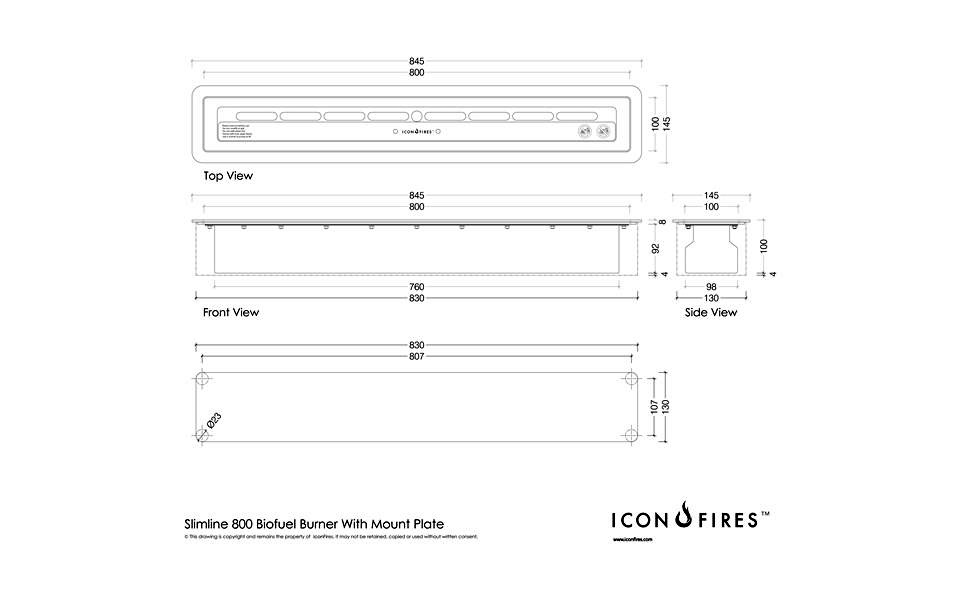 Встраиваемый Топливный блок для биокамина ICON FIRES Slimline 800mm ICON FIRES представляет Вам новую серию линейных встраиваемых горелок для биокаминов – Slimline. Горелки серии Slimline позволят осуществить любые дизайнерские решения и создать уникальный камин по Вашему собственному проекту. Топливные блоки производятся из 4-х и 6-ти миллиметровой брашированной нержавеющей стали марки AISI 304, что обеспечивает длительную и надёжную эксплуатацию в течение многих лет. Ёмкость горелки составляет 4,25 литра, длительность горения на одной заправке 4-7 часов. Тепловая мощность топливного блока, производимая при горении топлива - 5,5 кВт/час. Биотопливо один из самых экологически чистых источников энергии, при горении выделяет только тепло, пары воды и небольшое количество углекислого газа, что позволяет устанавливать биокамины в любых помещениях с хорошей вентиляцией. И не требует строительства специального дымохода. Пламя биокаминов, такое же живое и настоящее как у дровяных каминов, но при этом вам не требуется запас дров и постоянные работы по прочистке дымохода. Вы просто наслаждаетесь красивой игрой огня и мягким теплом от камина.