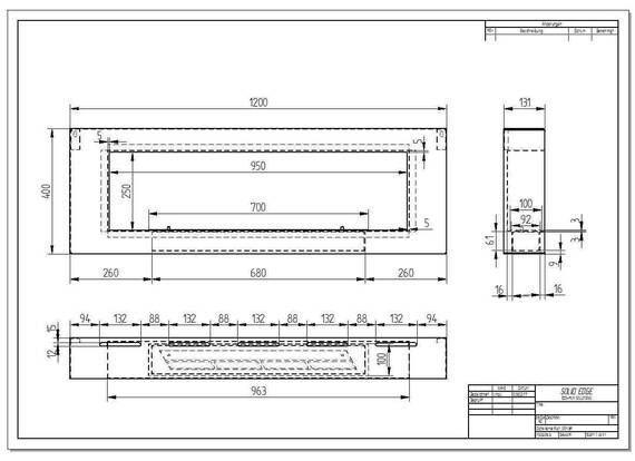 - Габаритные размеры ШxГxВ, (мм): 1200x131x400