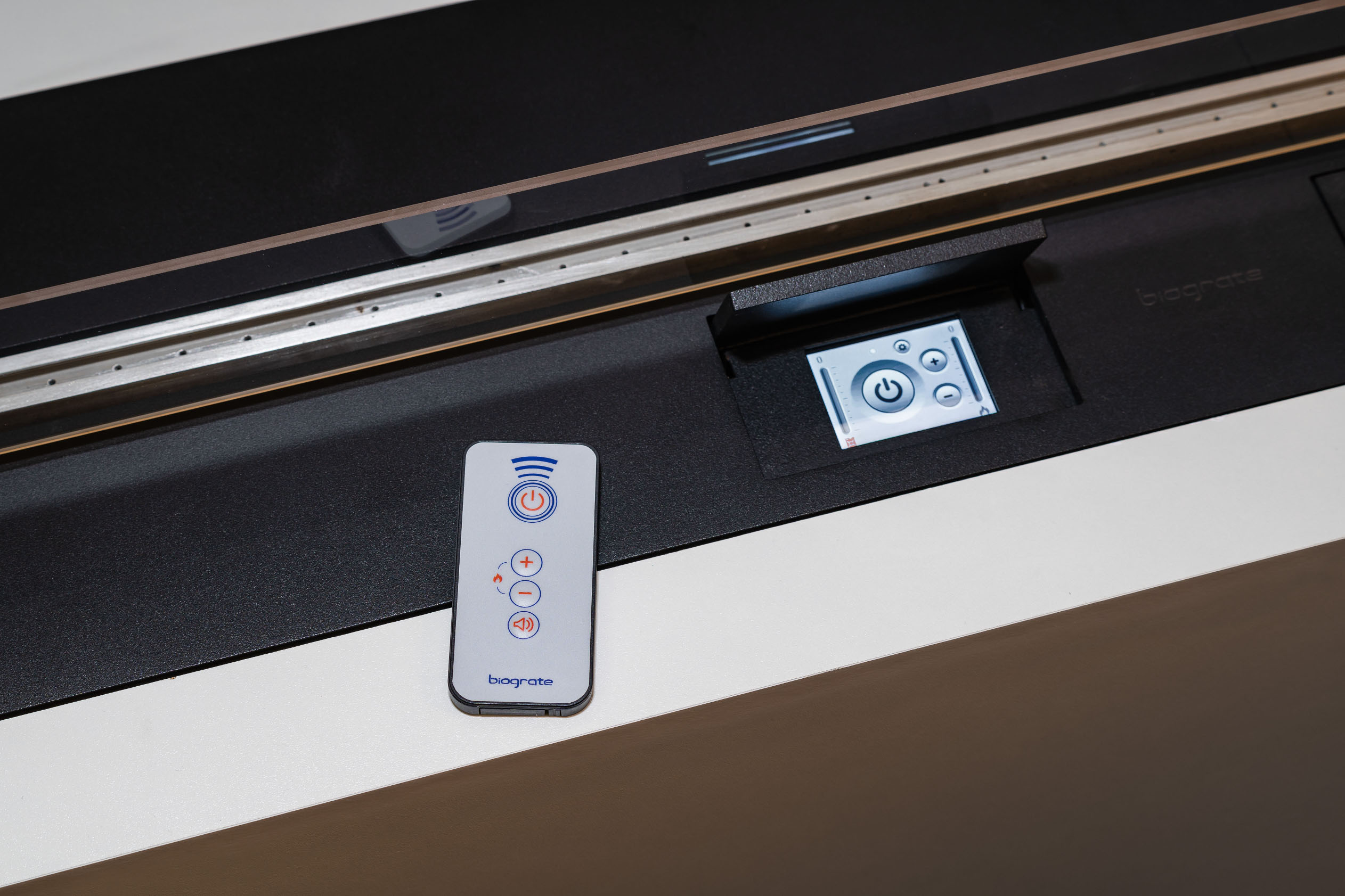 Биокамин оборудован цветным сенсорным дисплеем, который отображает уровень топлива в баке, время работы, высоту пламени. Интерфейс имеет функцию блокировки камина от случайного включения или блокировки от использования биокамина нежелательными лицами.