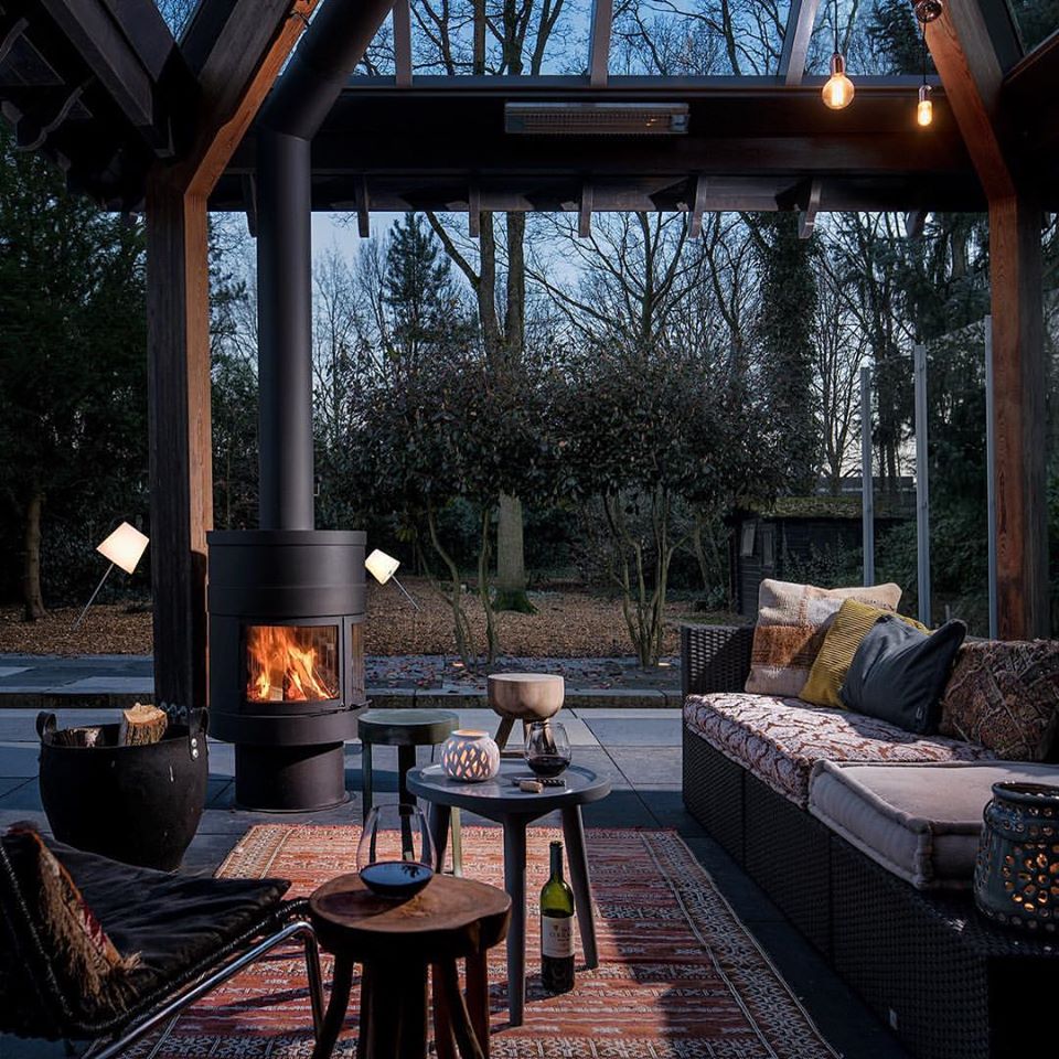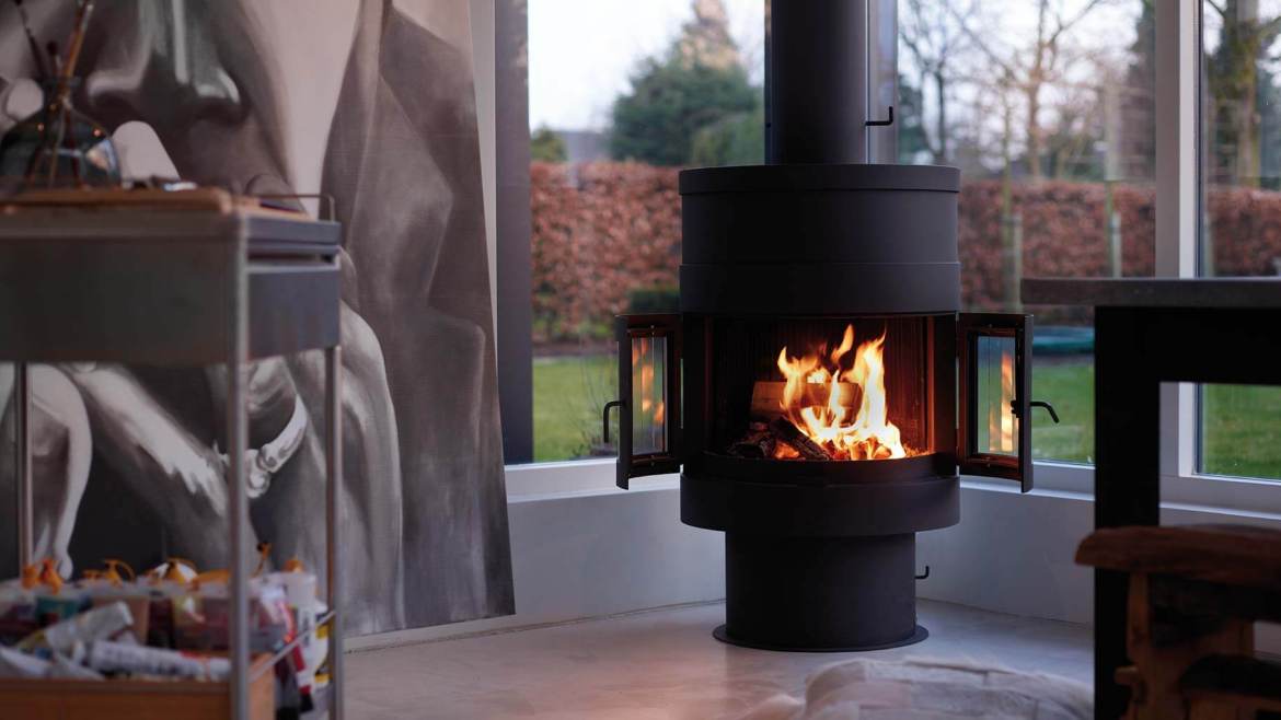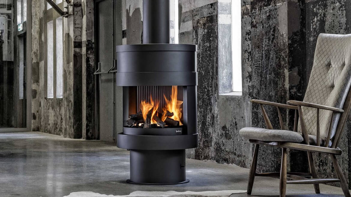 - Центральный камин из окрашенной нержавеющей стали. Снаружи модель являет приятный образ старой доброй буржуйки, а внутри содержит самые современные технологии.