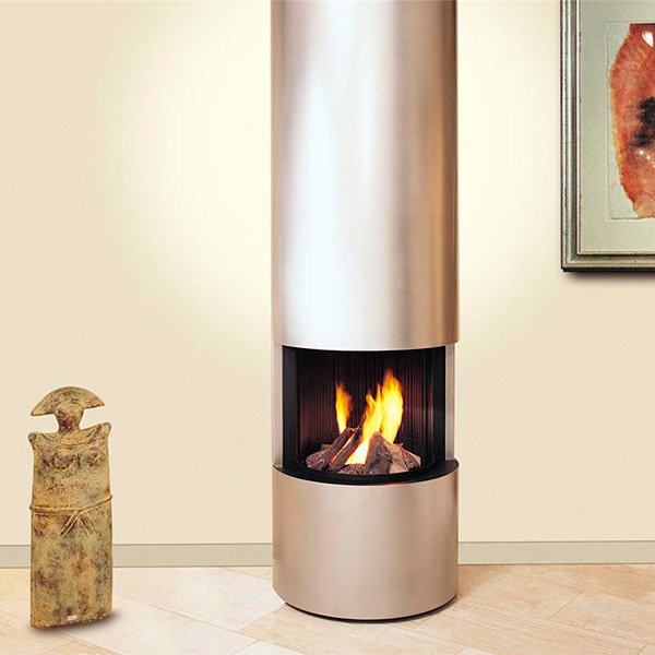 • Камин работает на газовом топливе, но вы сможете выбрать именно для этого камина дровяной вид отопления. Имеет круглую топку открытого характера. Такой вариант декоративного оформления топки абсолютно безопасен.