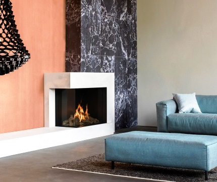 Современный угловой газовый камин Faber Matrix 800/650 II с прекрасным двусторонним видом огня. Поскольку камин оснащен двухсторонним стеклом, у вас есть несколько позиций с потрясающим видом на красивое пламя.