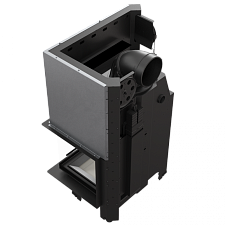 В камине реализована закрытая технология горения пламени. Характеризуется она полной герметичностью топочной камеры, за счет чего воздух в помещении не используется для поддержания пламени в очаге. Воздух же, насыщенный кислородом подается по дымоходу, подключаемому к камину. Он имеет двухконтурную конструкцию, и именно по внешнему контуру открывается доступ для свежего воздуха. По внутреннему контуру отводятся отработанные газы.