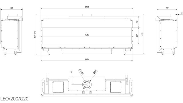 Газовый камин Kratki LEO/200/G20 магистральный газ