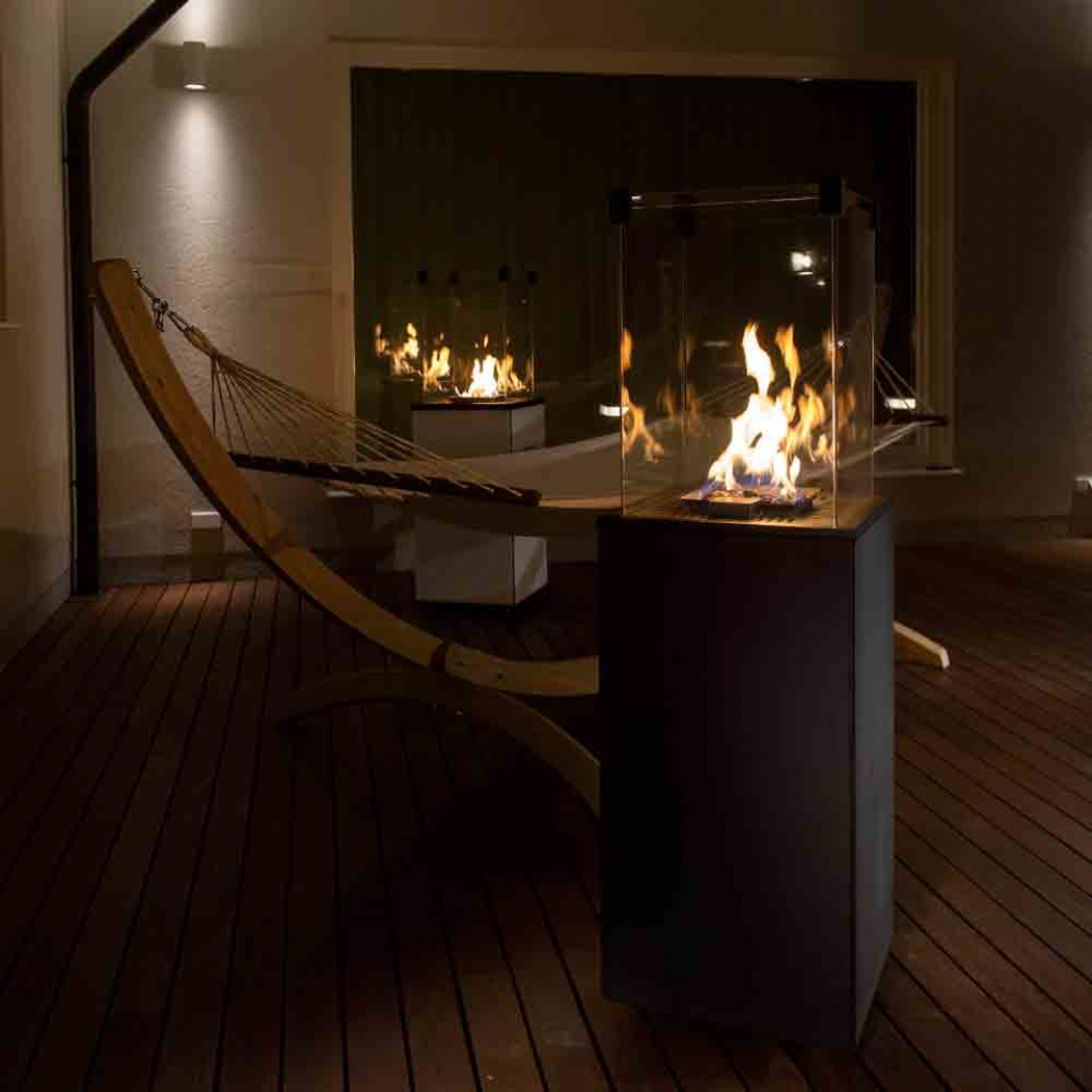 - Современный вид подходит практически везде. Обогреватель может быть элегантным оформлением на домашней террасе или в саду. Его также можно использовать в ресторанном и гостиничном хозяйстве как интересное дополнение к столовой и зоне отдыха. Огонь, видимый с четырех сторон.