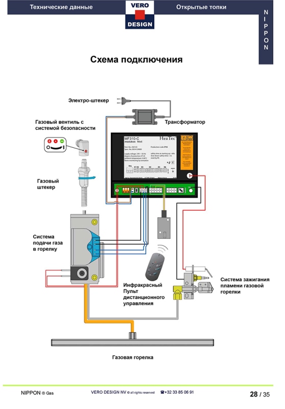 • Термодатчик в системе зажигания огня – блокирует подачу газа в каминную топку если нет возгорания в камине при его включении или если пламя в камине гаснет.