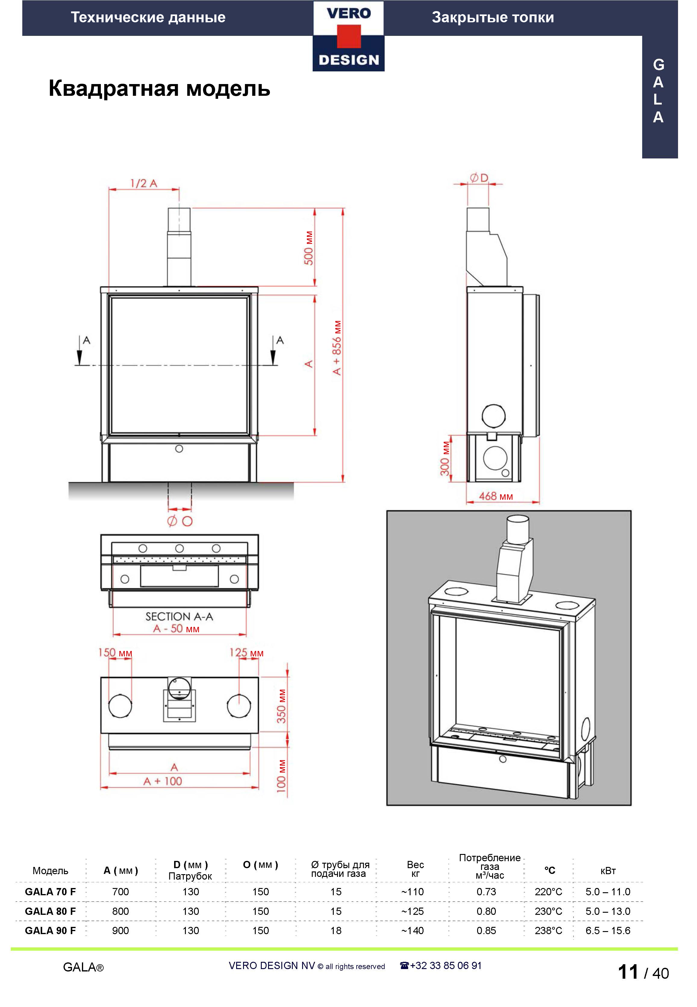 Газовый камин Vero Design Gala GA 80