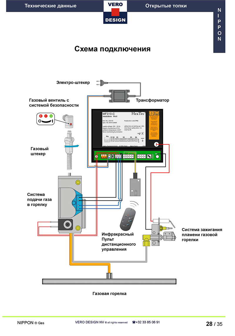 - Положение шиберной заслонки (модели Nippon®) дает команду на подачу или отключение газа.