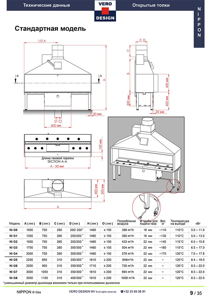 Газовый камин Vero Design Nippon NI G5 D