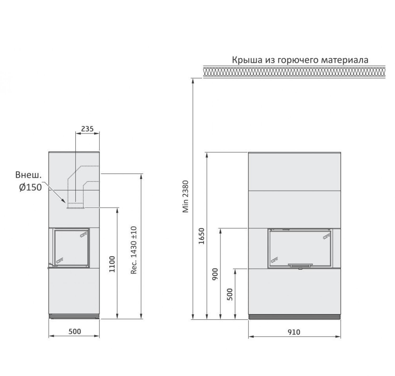 При установке у горючей задней стены, необходимо использовать встраиваемый защитный экран (дополнительное оборудование), либо изолировать заднюю стену негорючими материалами!