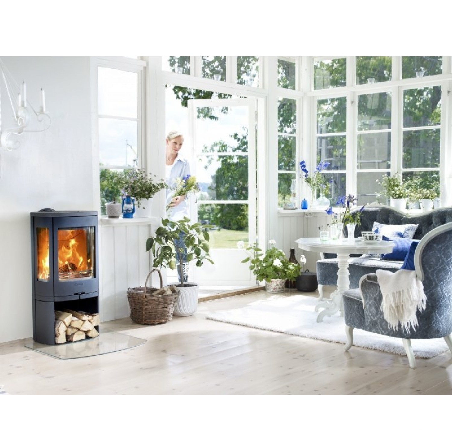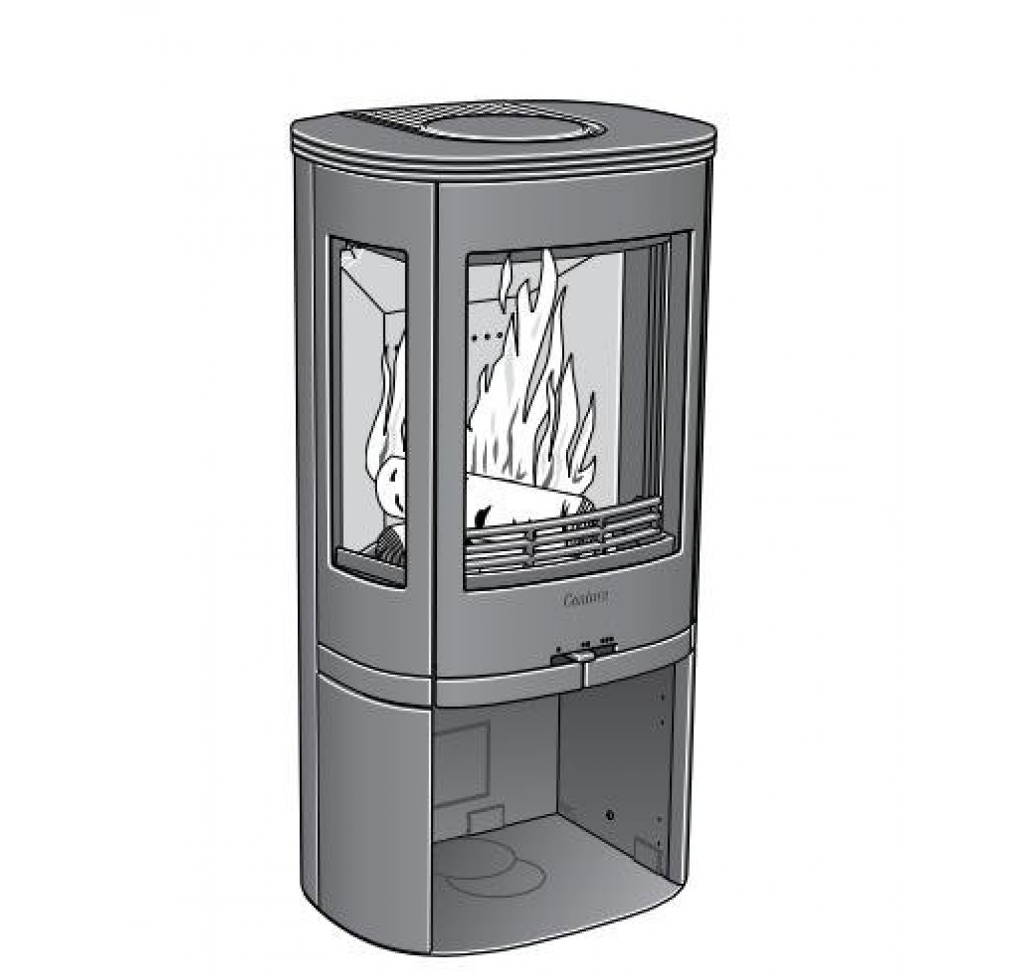 Печь-камин Contura 850 с широкими боковыми стеклами. Оснащен поворотной колосниковой решеткой, выдвижным зольником. Отделка: боковые панели - металл.