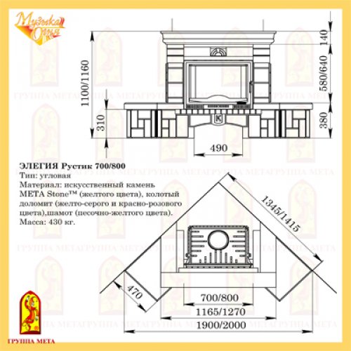 Каминная облицовка Мета Музыка Огня Ноктюрн Рустик 700