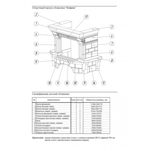 Каминная облицовка Соната изготовлена из камня Meta Stone™  мягкого бежевого оттенка. Камень очень прочный и долговечный, не выцветает, идеально подходит для эксплуатации в условиях Российского климата. Предназначена для оформления чугунных и стальных топок как российского, так и импортного производства с шириной фасада 700 мм.