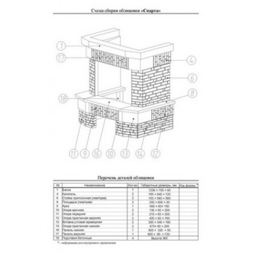 При монтаже камина в облицовке Спарта, необходимо точно следовать схеме кладки камина и требованиям пожарной безопасности.