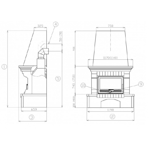- Диаметр дымохода, мм: - 150