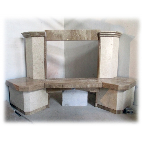 - Материал: колотый Crema Marfil, полированный Crema Marfi / Emperador Dark Chocolate / Emperador / Rosso VeronaТопки: шириной „700 мм” с прямым стекломРазмеры: пристенный вариант - 130x111x71 смРазмеры: угловой вариант - 120x111x120 см