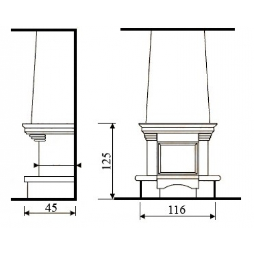 Расположение камина: пристенный