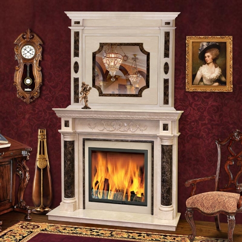 - Производитель:ArteveroСтрана изготовления:ИталияСтиль:КлассическиеРасположение: ПорталыСрок гарантии:1 годПортал из натурального мрамора Crema Marfil, Emperador.С высокохудожественной инкрустацией из мрамора.Размеры основания: 175x300x43 см.Максимальные внутренние размеры под топку: 94x90 см.