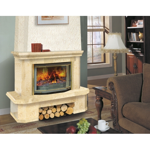 Каминная облицовка Bella Italia Bella полностью исполнена из полированного мрамора и выделяется своей цветовой аскетичностью, насыщая пространство мягким светом. Функциональность модели предусматривает использование чугунных топок со стеклом призматичной формы, при этом облицовка может оформляться деревянной или мраморной балкой. Текстура мрамора имеет размытый орнамент, стилизуя общую атмосферу под старину, что делает гостиную естественно грациозной и уютной.